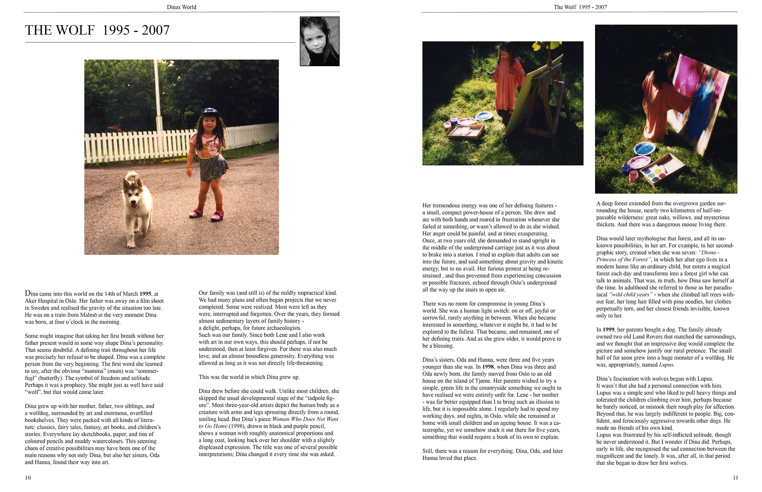 Dina Norlund (1995–2023) was a Norwegian artist and creator of graphic stories. In this book her entire artistic world is presented: the paintings, illustrations, graphic novels, designs, sketches, works in progress, ideas, scripts — and all the unfinished stories she left behind.
